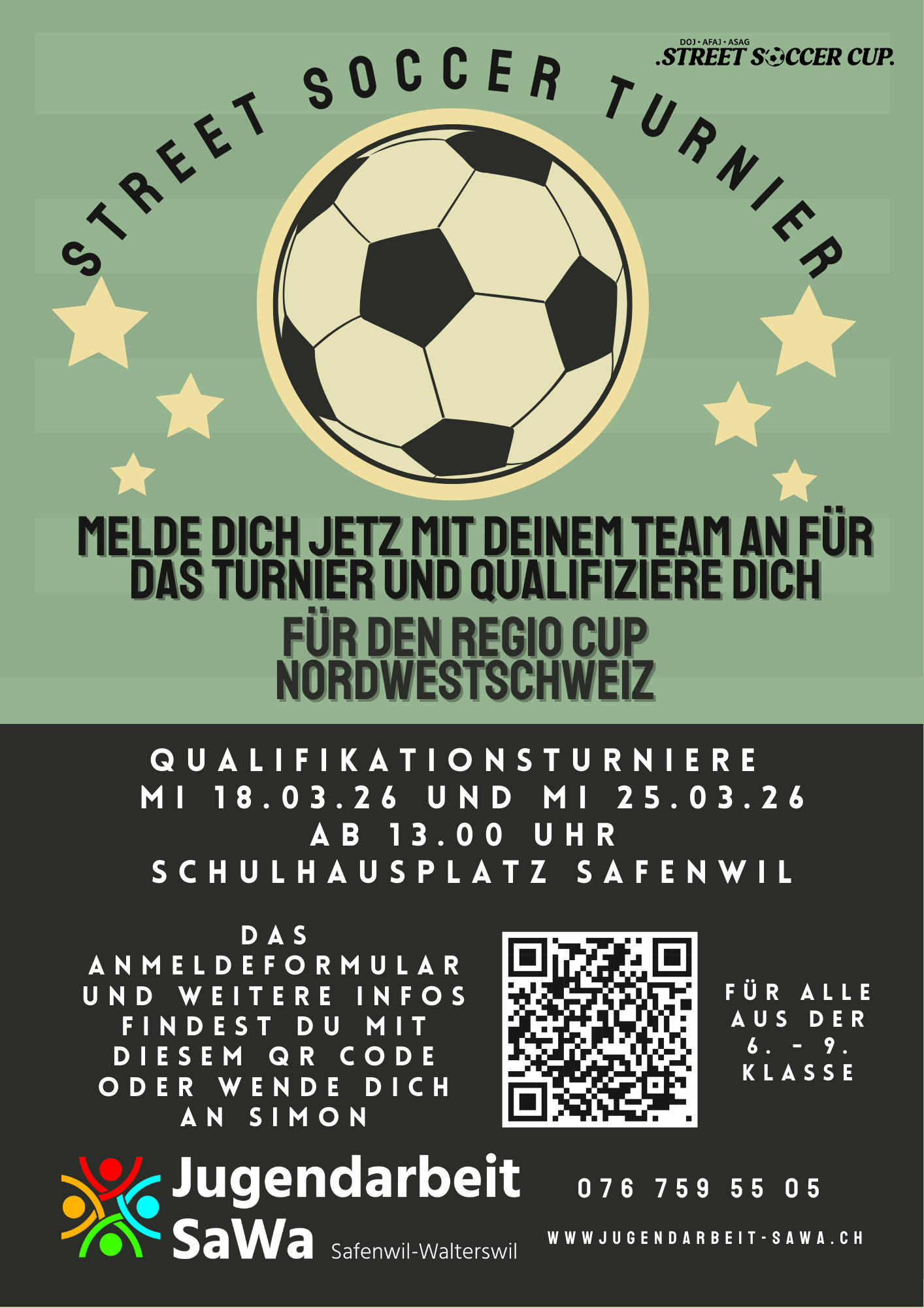 Das Anmeldeformular für das Street Soccer Turnier findest du ganz unten auf dieser Seite bei "Dokumente"
